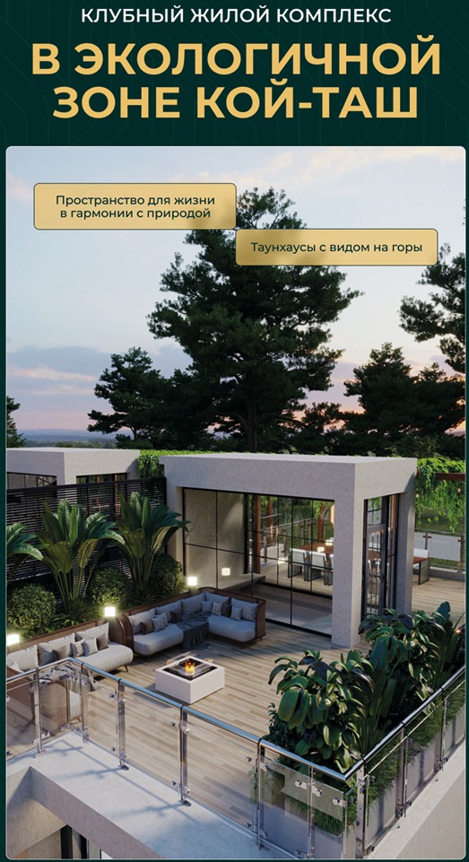 ✨ Премиальный таунхаус с панорамной террасой в закрытом эко-городке, с. Кой-Таш ✨