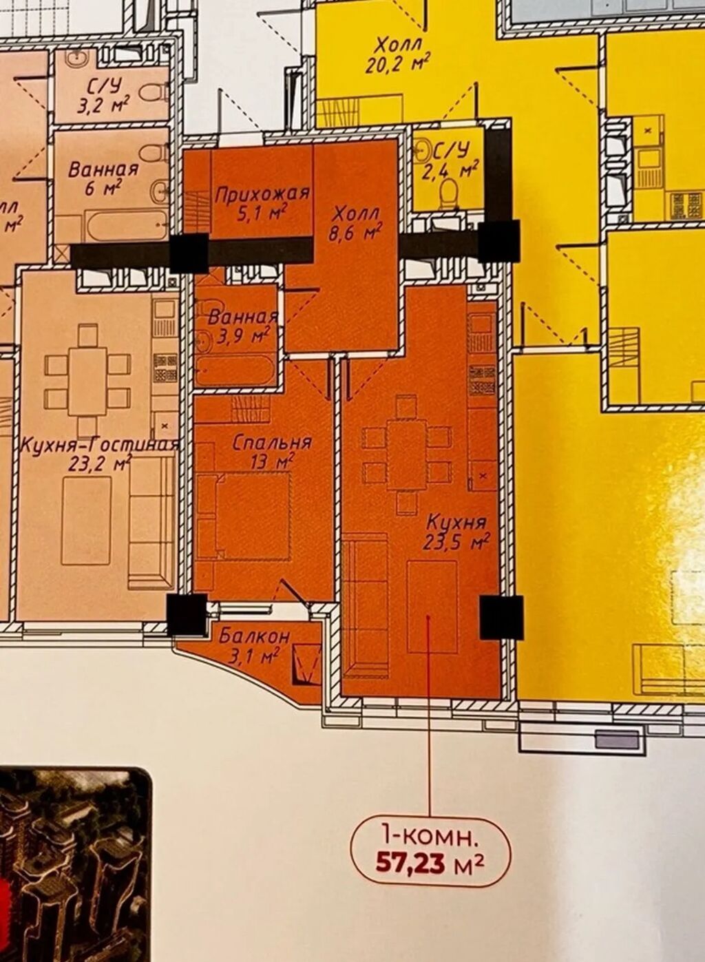 📐 Площадь: 57 м²