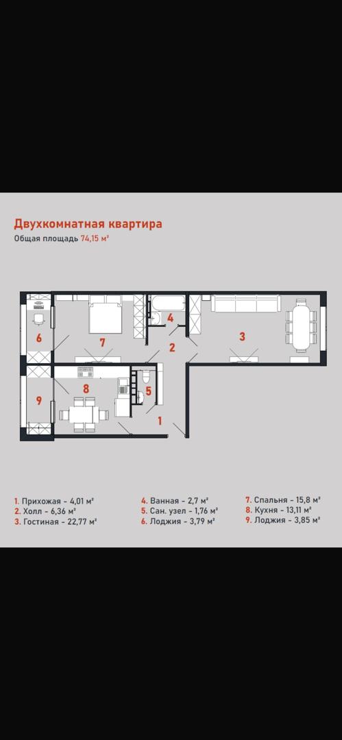 📐 Площадь: 74 м²