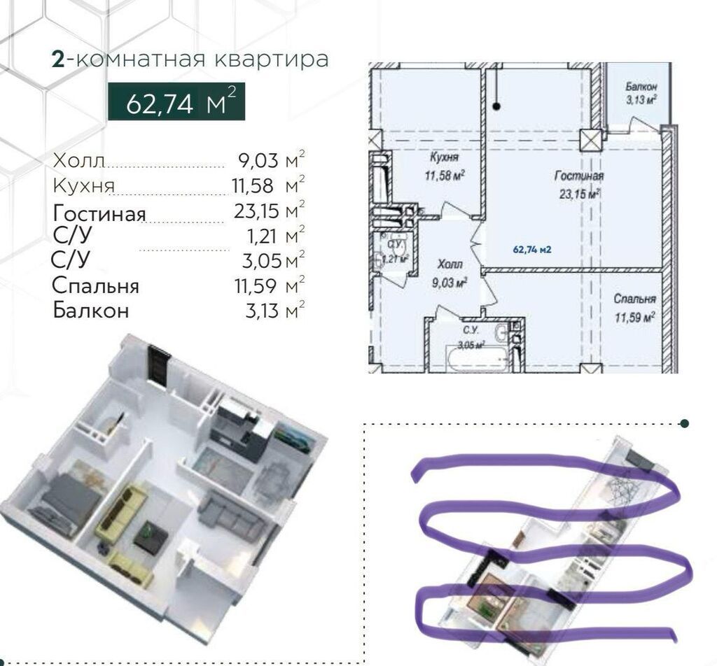📐 Площадь: 62 м²