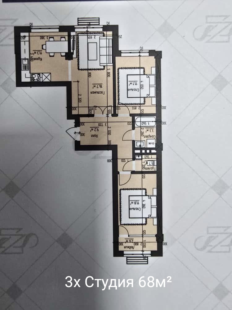 Площадь 68м2