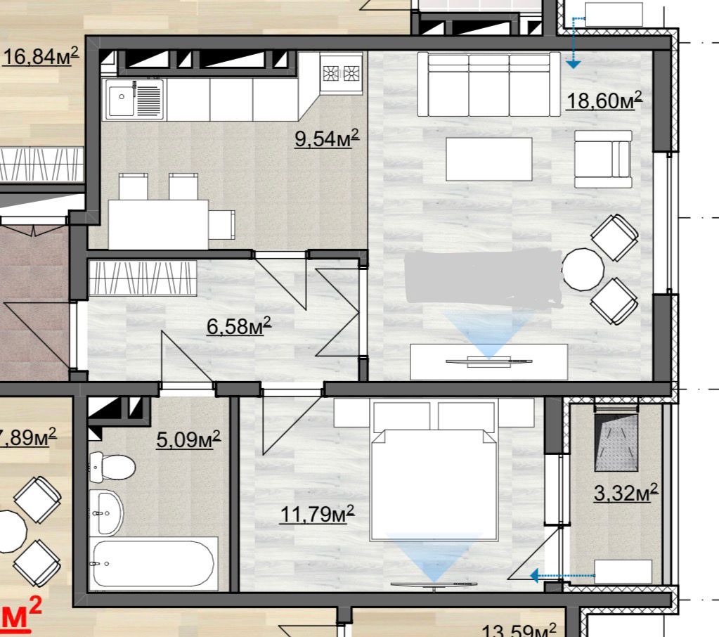 Площадь: 55.2м2