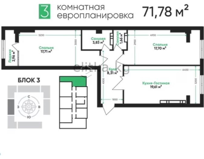 ✔ Окна выходят на восток и запад — хорошее естественное освещение