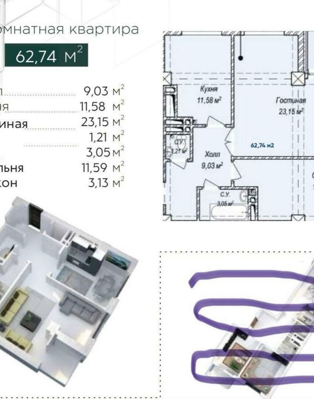 📐 Площадь: 62 м²