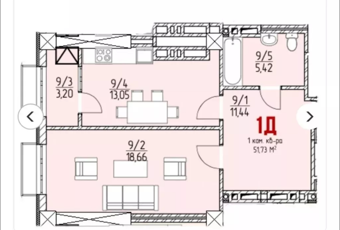 Площадь: 52м2
