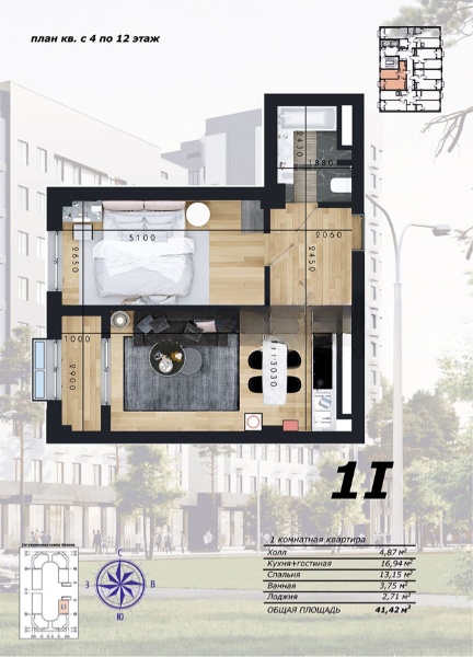 Площадь: 41 м2
